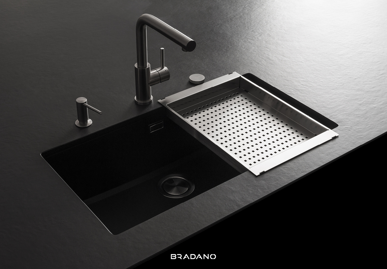 BRADANO est une entreprise française spécialisée dans les produits sanitaires pour la cuisine : éviers et cuves sous plan en inox ou BRADANIT®, mitigeurs et accessoires en inox massif. Notre objectif est de proposer des produits de grande qualité qui s’accordent parfaitement aux tendances de la décoration intérieure tout en répondant efficacement aux contraintes techniques pour que chaque élément s’intègre parfaitement afin de placer l’évier et la robinetterie au cœur de la cuisine.